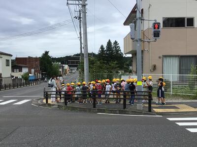 今日は1年生が登下校時に気を付けることを確認しながら,三角公園方面の通学路を歩きました。学校前の横断歩道は青信号の時間が短いので,左右を確認して素早く渡りました。学校到着前にしんまち公園に寄り,虫を探したり遊具で遊んだりもしました。